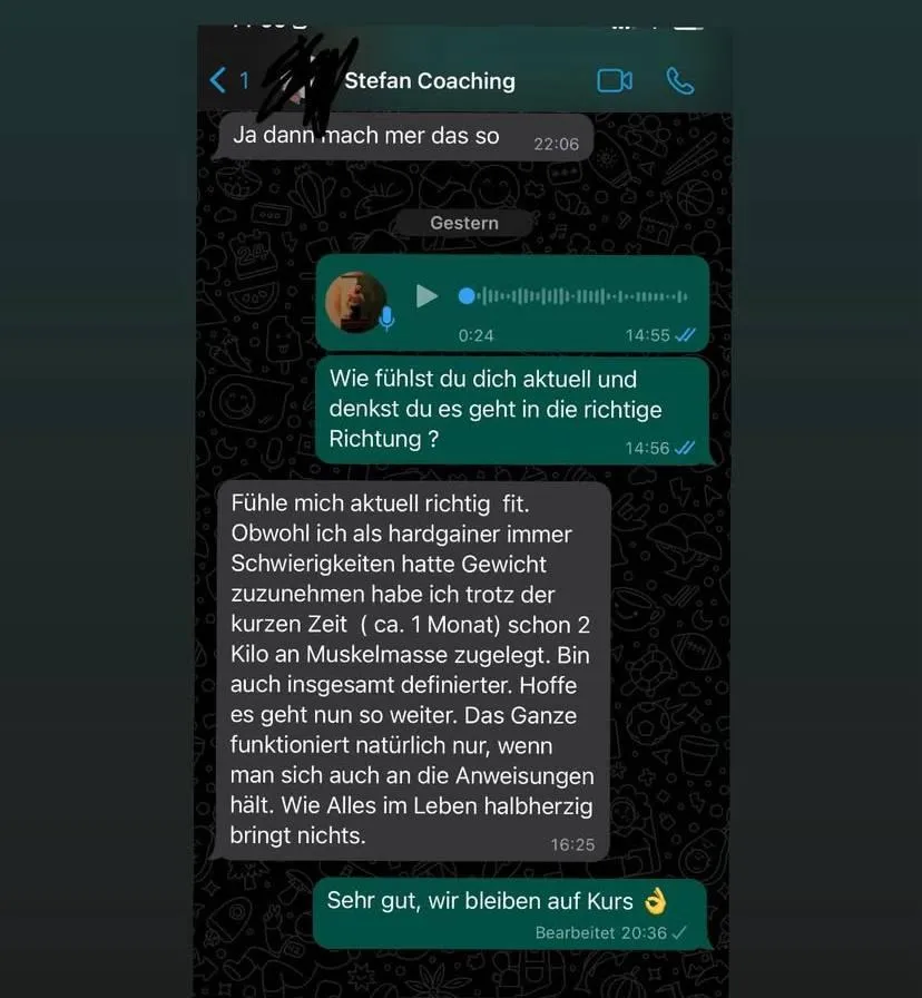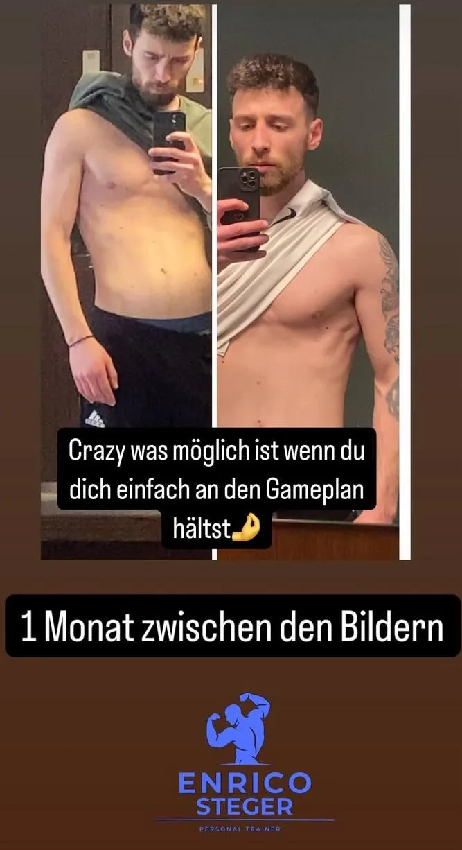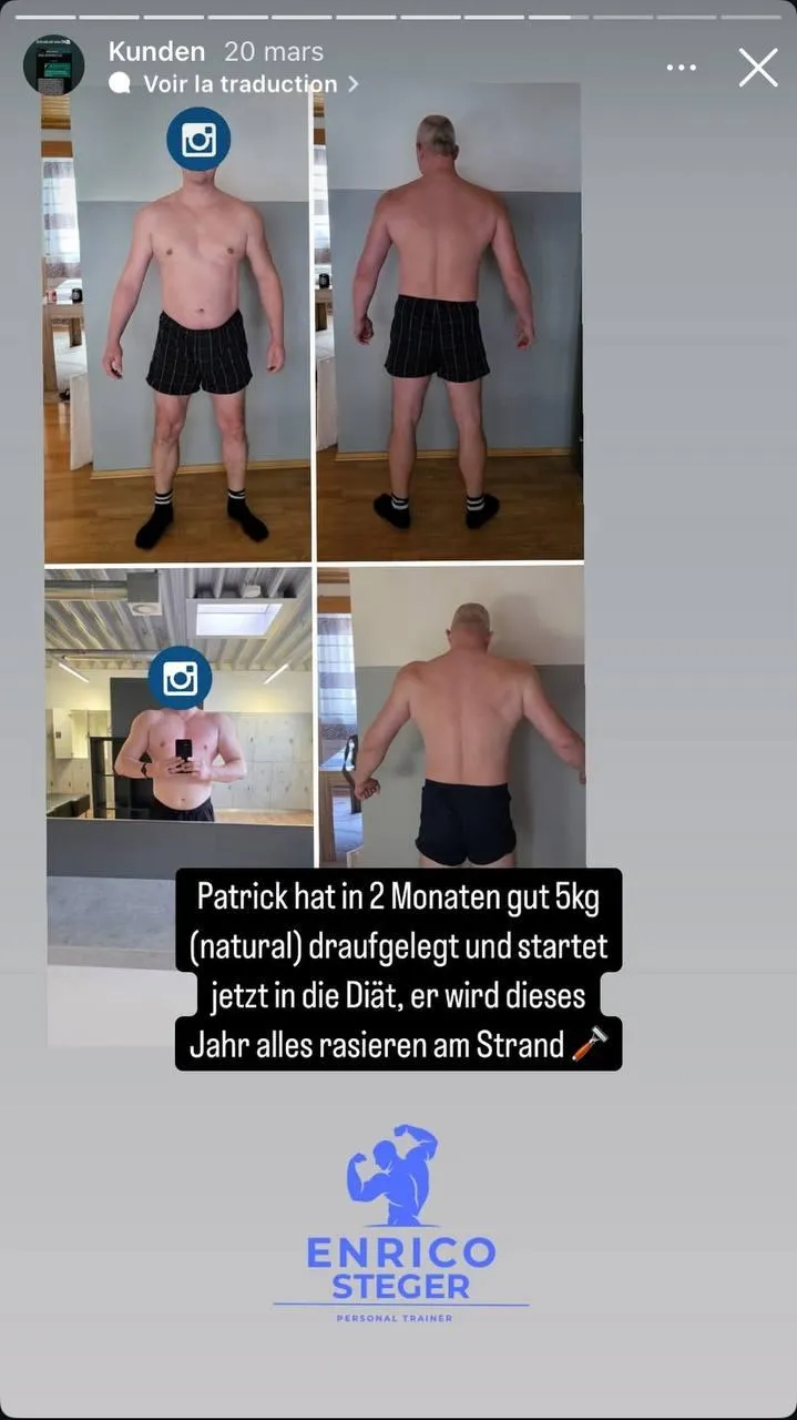 „Ich dachte, man müsste stundenlang ins Gym, um Muskeln aufzubauen. Enrico hat mir das Gegenteil bewiesen. Alles ist klar strukturiert und effizient. Ergebnis: +5 kg Muskelmasse mit nur drei Trainings pro Woche.“